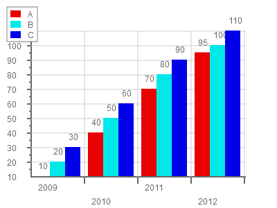 這里主要講一下柱形圖的生成,如果要生成柱形圖確切的說是坐標(biāo)圖,必須指定categories(或categoryMax,categoryMin,categoryUnit),valueMax,valueMin,valueUnit這些是構(gòu)成2d坐標(biāo)系的基本元素.
