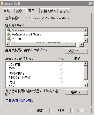 ㉿ Kevin(243062529) 10:33:53 這一步也設(shè)置了哦 完全按照這個(gè)來(lái)的 點(diǎn)晴客服(1071289759) 10:34:47 還有一個(gè)原因,D:\clicksun\hmailserver\data這個(gè)目錄訪問(wèn)權(quán)限必須開放為everyone ㉿ Kevin(243062529) 10:35:19 嗯、也設(shè)置好了 我發(fā)現(xiàn)這個(gè)文件夾下面沒(méi)有東西 點(diǎn)晴客服(1071289759) 10:37:27 那有大問(wèn)題,說(shuō)明你的配置肯定出問(wèn)題了 所有的郵件附件都是保存在下面的,現(xiàn)在保存不成功,說(shuō)明你的hmailserver根本就沒(méi)有安裝在這個(gè)目錄下,你應(yīng)該安裝到其他地方去了,將data這個(gè)目錄訪問(wèn)權(quán)限設(shè)為everyone試試看 設(shè)置了、配置過(guò)后data 和database 都是空的