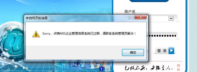 注冊成功后無法再次登陸進入,提示:Sorry,點晴MIS系統(tǒng)已過期,請聯(lián)系系統(tǒng)管理員解決