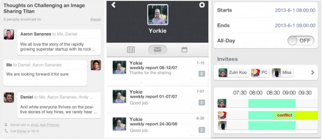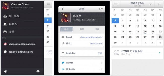在賬戶服務(wù)同步上,Seed Mail也做了一些創(chuàng)新——雖然不少郵箱客戶端都對Calendar信息進(jìn)行了同步,但Seed Mail將這一點擴充到了上午工作中。舉個例子,當(dāng)我收到A的郵件計劃向他電話反饋時,如果A的Calendar中恰好設(shè)定了在此時他正在進(jìn)行一項會議,那么Seed Mail會告知我此時A并非空閑狀態(tài),以免A在會議時受到來電的干擾……