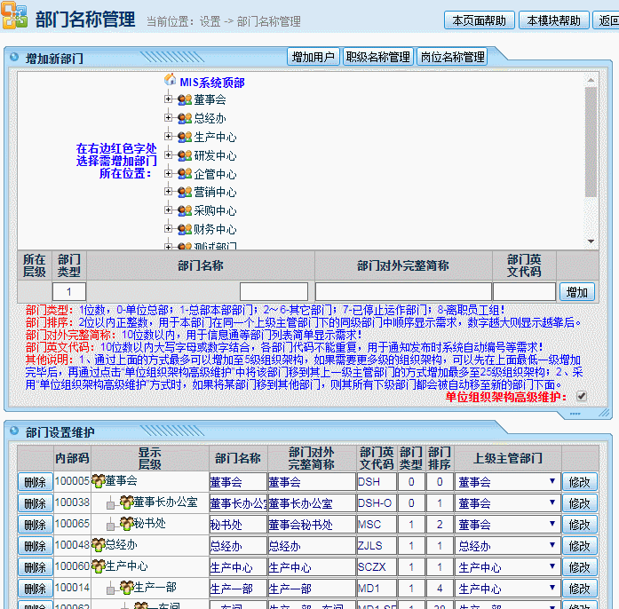 2、職級和崗位參照上面部門類似設置 其他注意事項: 1、不管是部門、還是崗位,都必須從最高階部門或最高階崗位開始由上往下設置,不要問為什么部門設置時上級主管部門是空的,無法選擇,沒有先設好最上級部門,當然就是空的!崗位設置同理,不要問為什么該崗位上級主管所在崗位是空的,沒有先設置好最上級崗位,當然下級崗位就無法選擇到上級崗位! 2、系統(tǒng)中預置了部分部門、崗位、職級,如果與本單位的情形不一致,更改為本單位對應的名稱即可,無需刪除再重建。 3、用戶英文登錄名是系統(tǒng)中身份唯一識別碼,不允許重復,中文名可以重復,但一般也不建議重復,變通方法如下: 兩個用戶都叫:張三,那么創(chuàng)建用戶時,創(chuàng)建的早的那位應該就是:登錄名-zhangsan、用戶名-張三了。已經創(chuàng)建的不允許再修改,后建的這位可以用:zhangsan_qgb、用戶名-張三(企管部),以示區(qū)別,英文登錄名的核心要求是不允許重復,在后面加上1、2、3也行:zhangsan1、zhangsan2、zhangsan3,但這樣識別性會差些,中文名可以在后面附上部門。 4、正常情況下,只有沒有下屬的最基層崗位允許一崗多人,其他所有有下屬的崗位原則上都只有一個人,同一個有下屬的崗位有多個人時必須拆分為多個不同的崗位。 5、創(chuàng)建和更改員工信息時,不允許直接更改所在部門,必須通過更改員工所在崗位的方式,間接自動更改為此崗位綁定的部門。 該文章在 2023/7/26 10:01:40 編輯過