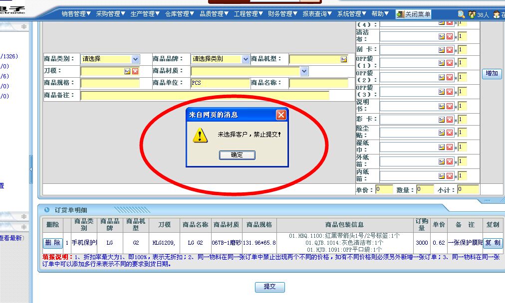 [點(diǎn)晴模切ERP]保護(hù)膜下單編輯時(shí)提示未選擇客戶