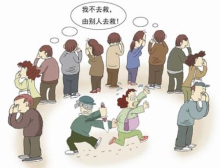 3.責(zé)任分散效應(yīng) 1964年3月13日夜3時20分,在美國紐約郊外某公寓前,一位叫朱諾比白的年輕女子在結(jié)束酒巴間工作回家的路上遇刺。當(dāng)她絕望地喊叫:“有人要殺人啦!救命!救命!”聽到喊叫聲,附近住戶亮起了燈,打開了窗戶,兇手嚇跑了。當(dāng)一切恢復(fù)平靜后,兇手又返回作案。當(dāng)她又叫喊時,附近的住戶又打開了電燈,兇手又逃跑了。當(dāng)她認(rèn)為已經(jīng)無事,回到自己家上樓時,兇手又一次出現(xiàn)在她面前,將她殺死在樓梯上。在這個過程中,盡管她大聲呼救,她的鄰居中至少有38位到窗前觀看,但無一人來救她,甚至無一人打電話報警。這件事引起紐約社會的轟動,也引起了社會心理學(xué)工作者的重視和思考。人們把這種眾多的旁觀者見死不救的現(xiàn)象稱為責(zé)任分散效應(yīng)。對于責(zé)任分散效應(yīng)形成的原因,心理學(xué)家進(jìn)行了大量的實驗和調(diào)查,結(jié)果發(fā)現(xiàn):這種現(xiàn)象不能僅僅說是眾人的冷酷無情,或道德日益淪喪的表現(xiàn)。因為在不同的場合,人們的援助行為確實是不同的。當(dāng)一個人遇到緊急情境時,如果只有他一個人能提供幫助,他會清醒地意識到自己的責(zé)任,對受難者給予幫助。如果他見死不救會產(chǎn)生罪惡感、內(nèi)疚感,這需要付出很高的心理代價。而如果有許多人在場的話,幫助求助者的責(zé)任就由大家來分擔(dān),造成責(zé)任分散,每個人分擔(dān)的責(zé)任很少,旁觀者甚至可能連他自己的那一份責(zé)任也意識不到,從而產(chǎn)生一種“我不去救,由別人去救”的心理,造成“集體冷漠”的局面。如何打破這種局面,這是心理學(xué)家正在研究的一個重要課題。