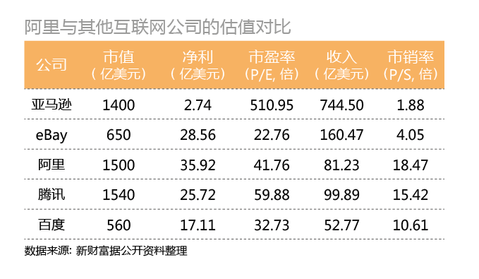 先橫向對比亞馬遜與eBay,亞馬遜年收入高達744.5億美元,凈利潤僅有2.74億美元,但市值卻高達1400億美元;eBay年收入僅160億美元,凈利潤高達28.56億美元,但市值卻僅有650億美元,大大低于亞馬遜。 eBay雖然收入較亞馬遜低,但其盈利能力大大強于亞馬遜,其市值反而遠不及亞馬遜,說明華爾街更看中電商的規(guī)模因素。 相較而言,阿里的年收入81.23億美元,僅為亞馬遜的大約11%、eBay的一半,但其凈利潤卻高達35.92億美元,是亞馬遜的13倍、eBay的1.26倍。按照華爾街傾向于規(guī)模指標的電商估值標準,阿里集團的估值不應高于eBay的650億美元,但考慮到阿里集團的超強盈利能力,以及平臺交易規(guī)模比亞馬遜及eBay的總和還要高,因而其估值應該有一定的溢價,或許1000億美元較為合理。 但如果進一步考慮阿里集團因為存在公司治理缺陷,其估值應在1000億美元的基礎上打一個折扣,約至800-900億美元。 因而,從與亞馬遜和eBay的橫向對比來看,阿里1500億美元的外界估值中位數(shù),明顯是被高估的。 再來對比一下國內的BAT三巨頭。騰訊年收入99.89億美元,凈利潤25.72億美元,市值1540億美元,對應的市盈率為59.88倍,市銷率為15.42倍;百度年收入52.77億美元,凈利潤17.11億美元,市值650億美元,對應的市盈率為32.73倍,市銷率為10.61倍。 如果阿里取1500億美元的估值中位數(shù),則其對應的市盈率為41.76倍,市銷率為18.47倍。阿里的市盈率估值低于騰訊而高于百度,這個市盈率倍數(shù)基本符合三家的實際實力高差。阿里的市銷率估值較騰訊及百度皆高出不少,從市銷率角度而言,阿里的1500億美元估值同樣也有虛“胖”的成分。綜合而言,以百度及騰訊作為參照,阿里1300億美元的估值是較為合理的。 如果把阿里集團的公司治理缺陷對應的折扣算入,阿里在BAT坐標中的估值,大約在1000-1100億美元。 其實,估值折扣不僅體現(xiàn)在其公司治理結構的缺陷方面,還體現(xiàn)在其詳細財務數(shù)據(jù)的不透明。例如,阿里集團最重要的兩個電商平臺—淘寶與天貓,招股書均未詳細披露各自的營收數(shù)據(jù),而是歸總到一個名為“中國商務”的項目下,令外界無法進一步分析其各自的詳細情況。這顯然會妨礙估值的精確度。 此外,支付寶作為上市體系之外的資產(chǎn),與阿里集團產(chǎn)生如此廣泛的關聯(lián)交易,而支付寶的詳情卻并未在招股文件中得到足夠充分的披露,其基本財務狀況是怎樣的?支付寶與淘寶、天貓等之間的關聯(lián)交易是如何定價的?外界皆無從獲悉。 如此龐大而復雜的資產(chǎn)打包上市,公司治理存在缺陷、關聯(lián)交易紛繁復雜、財務數(shù)據(jù)透明度有所欠缺,外界對其估值因此難免陷入盲人摸象的境地。 本文來自新財富,轉載請注明來源。 該文章在 2014/7/9 10:07:08 編輯過 |