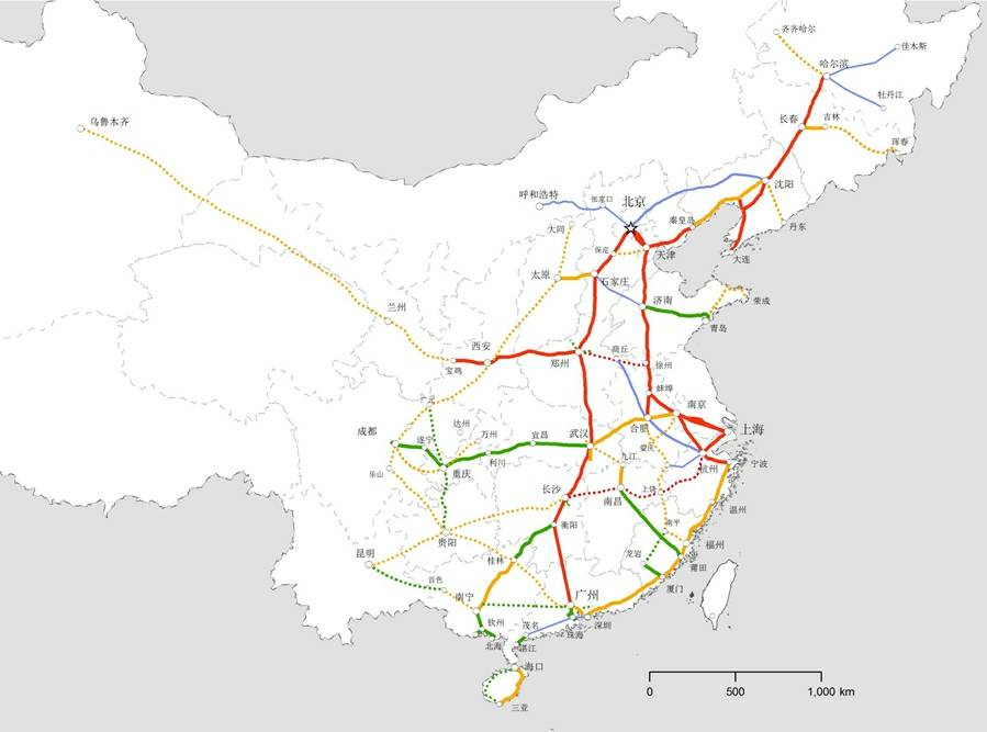 中國高鐵網(wǎng)示意圖(截止2013年底)