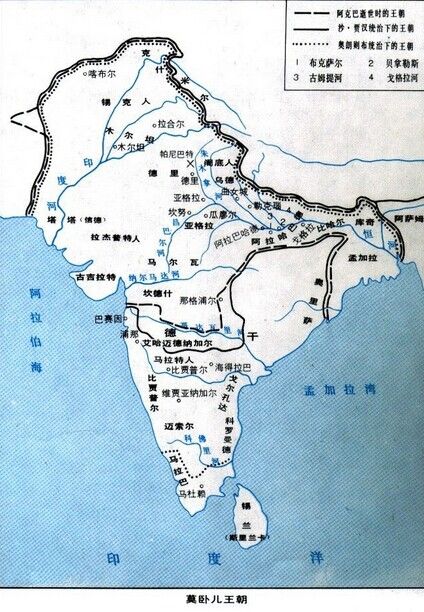 笈多王朝的領(lǐng)土范圍 旃陀羅笈多二世取得了一次對(duì)塞人的輝煌勝利,常常被認(rèn)為是印度傳說(shuō)中的偉大英雄超日王。中國(guó)僧人法顯在旃陀羅笈多二世在位時(shí)訪問(wèn)了印度,他描寫(xiě)這位國(guó)王的賢明統(tǒng)治使印度人民安居樂(lè)業(yè)。笈多王朝的文化非常繁榮。婆羅門(mén)教再度興起,不過(guò)此時(shí)它已經(jīng)開(kāi)始向現(xiàn)代印度教轉(zhuǎn)變;佛教和耆那教繼續(xù)擁有廣泛信徒。笈多君主的宗教政策總體上來(lái)說(shuō)是容許所有教派傳播。在文學(xué)上,出現(xiàn)了古代印度最偉大的詩(shī)人迦梨陀娑。 7,后笈多王朝(公元700年前后) 從中亞侵入印度的嚈噠人(白匈奴)嚴(yán)重地?fù)p害了笈多王朝。嚈噠人后來(lái)被印度社會(huì)所同化,但他們?cè)?~6世紀(jì)的活動(dòng)促成了帝國(guó)的解體。許多地方王公和民族反對(duì)笈多王朝的中央權(quán)力,于是這個(gè)帝國(guó)迅速瓦解了。所謂后笈多王朝(實(shí)際上與真正的笈多王室沒(méi)有關(guān)系)的統(tǒng)治權(quán)力再次退回摩揭陀。7世紀(jì)的印度是分裂和混亂的,除了卡瑙季(曲女城)的統(tǒng)治者戒日王在北印度建立過(guò)短暫的霸權(quán)之外,沒(méi)有一個(gè)王公擁有廣大的權(quán)力。不過(guò),在南印度則興起了幾個(gè)強(qiáng)盛的政權(quán),如遮婁其人(其統(tǒng)治者打敗了戒日王的進(jìn)攻)、羅濕陀羅拘陀王朝和帕拉瓦人。 8,拉其普特(7世紀(jì)中葉直到12世紀(jì)末) 大約在7世紀(jì)北印度興起了一種新的力量,即拉其普特人。他們?cè)?~8世紀(jì)之后的印度歷史中起了突出作用。從7世紀(jì)中葉直到12世紀(jì)末穆斯林征服北印度之間的歷史時(shí)期常常被稱為拉其普特時(shí)期。在這段時(shí)間里,幾乎所有的北印度政權(quán)都是拉其普特人建立的;南方的遮婁其人也是拉其普特人的一支。拉其普特人并不是一個(gè)統(tǒng)一的民族,他們中特別重要的有瞿折羅-布羅蒂訶羅人、兆漢人和遮婁其人。各拉其普特王國(guó)之間混戰(zhàn)不已,同時(shí)又激烈抵抗伊斯蘭教力量對(duì)印度的侵略,以致拉其普特人常被認(rèn)為是印度教的保衛(wèi)者。阿拉伯人在8世紀(jì)初征服了印度西北部的信德,揭開(kāi)了穆斯林入侵印度的序幕。 9~11世紀(jì)在南印度出現(xiàn)了幾個(gè)強(qiáng)大的王國(guó),如朱羅國(guó)(注輦)和潘地亞。其中朱羅國(guó)曾經(jīng)侵入印度尼西亞諸島嶼。 9,伊斯蘭 A.德里蘇丹國(guó) 伊斯蘭對(duì)印度的真正征服開(kāi)始于11世紀(jì),是由中亞的突厥人進(jìn)行的。伽色尼王朝的蘇丹馬茂德入侵印度12次以上,在北印度造成嚴(yán)重破壞。伽色尼王朝在中亞的領(lǐng)土于1173年被其位于阿富汗的原附庸廓爾王朝吞并。廓爾王朝的統(tǒng)治者穆伊茲-烏德-丁·穆罕默德(廓爾的穆罕默德)在1192年的第二次德賴戰(zhàn)役中決定性地?fù)魯×苏诐h人;他留在印度的總督(出身奴隸)顧特卜-烏德-丁·艾伯克于1206年采用蘇丹頭銜統(tǒng)治被穆斯林征服的北印度地區(qū),定都德里。此后直到莫臥兒帝國(guó)建立,北印度的歷史即為德里蘇丹國(guó)的歷史。 德里蘇丹國(guó)是由來(lái)自阿富汗的突厥人建立的穆斯林政權(quán)。先后有5個(gè)王朝在德里進(jìn)行過(guò)統(tǒng)治:奴隸王朝,卡爾吉王朝,圖格魯克王朝,賽義德王朝和羅第王朝。不過(guò),德里蘇丹國(guó)并非統(tǒng)一了整個(gè)印度的帝國(guó)。除了在阿拉-烏德-丁·卡爾吉等極強(qiáng)大的蘇丹統(tǒng)治時(shí)期,德里蘇丹國(guó)充其量只是北印度的一個(gè)最大的王國(guó)。北印度的拉其普特人繼續(xù)保有強(qiáng)大的力量,而南印度則幾乎從未進(jìn)入蘇丹政權(quán)的版圖。阿拉-烏德-丁·卡爾吉時(shí)期對(duì)德干地區(qū)的3次大舉入侵使德干北部服從蘇丹統(tǒng)治直到14世紀(jì);菲羅茲·圖格魯克蘇丹臣服了印度教王公統(tǒng)治的奧里薩。困擾蘇丹的問(wèn)題主要是叛亂和外部入侵。 在整個(gè)德里蘇丹國(guó)存在時(shí)期,叛亂和王室內(nèi)訌層出不窮。各地的分立勢(shì)頭從未被有效遏止,幾個(gè)著名的蘇丹都曾鎮(zhèn)壓過(guò)大規(guī)模的叛亂。外部入侵的威脅開(kāi)始主要是來(lái)自蒙古人,后來(lái)則是中亞的征服者帖木兒。帖木兒的可怕入侵終于使搖搖欲墜的蘇丹政權(quán)徹底崩潰。德里蘇丹國(guó)在帖木兒撤離之后不久解體,獨(dú)立王國(guó)林立各地,雖然還有名義上的蘇丹,但他們的權(quán)力幾乎只限于德里和旁遮普。 德里蘇丹國(guó)時(shí)期,印度的穆斯林文化有了很大發(fā)展。許多蘇丹執(zhí)行相對(duì)寬松的宗教政策,除了征收人頭稅之外并不對(duì)非穆斯林居民進(jìn)行迫害。伊斯蘭式的宏偉建筑在印度聳立起來(lái),這一時(shí)期所形成的建筑風(fēng)格有時(shí)被稱為德里風(fēng)格。在文學(xué)上,產(chǎn)生了阿密爾·胡斯魯這樣的偉大詩(shī)人。 突厥人也帶來(lái)了一種有害制度:在宮廷和貴胄之家中流行的奴隸制。特別值得提出的是烏爾都語(yǔ)在蘇丹時(shí)代產(chǎn)生,以及羅第王朝末期出現(xiàn)了錫克教。 B.莫臥兒帝國(guó) 德里蘇丹國(guó)瓦解造成的權(quán)力真空并沒(méi)有持續(xù)很長(zhǎng)時(shí)間,新的穆斯林征服者很快在西北方出現(xiàn)。1526年,帖木兒的直