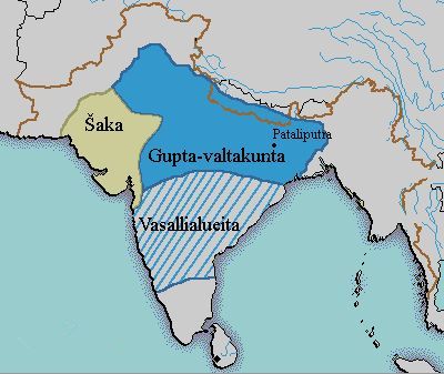 亞歷山大帝國(guó) 從前2世紀(jì)初開(kāi)始,大夏希臘人、塞人和安息人先后侵入印度;塞人的侵略尤其廣泛,他們?cè)谡麄€(gè)西印度建立了許多公國(guó)。大月氏人成為最成功的侵入者,他們?cè)诒庇《冉⒘藦?qiáng)大的貴霜帝國(guó),這個(gè)國(guó)家被列舉為古典世界的四大帝國(guó)(羅馬帝國(guó)、安息、貴霜帝國(guó)和漢朝)之一。貴霜時(shí)代的寶貴產(chǎn)物是大乘佛教和犍陀羅藝術(shù)。 6,笈多王朝(公元320年~540年) 貴霜帝國(guó)在強(qiáng)盛了若干世紀(jì)之后分裂為一些小的政治力量。取代他們?cè)诒庇《鹊膬?yōu)勢(shì)地位的是旃陀羅笈多一世建立的笈多王朝。笈多王朝是孔雀王朝之后印度的第一個(gè)強(qiáng)大王朝,也是由印度人建立的最后一個(gè)帝國(guó)政權(quán),常常被認(rèn)為是印度古典文化的黃金時(shí)期。與孔雀王朝一樣,笈多王朝的發(fā)源地是在摩揭陀;這個(gè)王朝的頭幾位君主都是征服者,他們確實(shí)統(tǒng)一了北印度,但在南方則并沒(méi)有擴(kuò)張得太遠(yuǎn)。