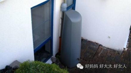 4、有些德國房子外墻豎有一人高的金屬箱,形狀有點象古埃及裝木乃伊的棺材,頂端與房頂排水管相連。問了才知道是雨水收集器,能裝30升的雨水,收集的雨水會用于澆花澆草坪。德國多雨,需要人工澆灌的時候不太多,用自來水澆灌的成本其實并不高。