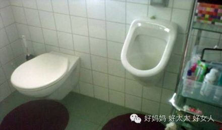 7、幾個月前我提到德國人家里除了馬桶還裝有小便池,這樣男士小便時就不用搞得馬桶里尿液四濺,對女士會更衛(wèi)生。這次到德國人家里特意拍了張照片。這家的衛(wèi)生間并不大,不到5平方米。