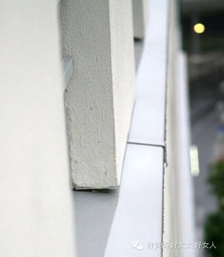16、德國窗框下沿有兩個排水孔,窗框與窗臺之間鋪有一層外傾的金屬板,金屬板延伸到窗臺外側(cè),邊緣突出下彎,就象窗臺上鋪了個金屬「屋檐」。雨水順著窗戶下來,通過窗框排水孔流到金屬板表面,再沿外側(cè)直接墜落地面,可極大減少雨水對窗臺和墻面的浸泡滲透。