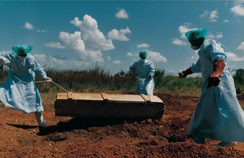 而隨著39歲的塞拉利昂醫(yī)生、病毒性出血熱專家卡恩的去世,人們對(duì)正在西非國(guó)家流行的埃博拉病毒又多了幾分恐懼。卡恩是塞拉利昂唯一一位病毒性出血熱專家,曾照顧過(guò)一百多名埃博拉患者。在確診感染病毒后,從發(fā)病到去世不到一個(gè)星期??ǘ魃肮ぷ鬟^(guò)的治療中心,已經(jīng)有3名護(hù)士因感染埃博拉病毒喪生。 在利比里亞,埃博拉病毒已經(jīng)奪走了該國(guó)衛(wèi)生部一位高級(jí)官員、醫(yī)學(xué)博士薩繆爾·布里斯本的生命;另有兩位美國(guó)人——33歲的醫(yī)生肯特·布朗特利博士和國(guó)際救援組織工作人員南?!烟夭栆脖蛔C實(shí)感染了該病毒。 即使在救治患者時(shí)全副武裝,穿全套保護(hù)裝備,包括及膝膠靴、不透氣的防護(hù)衣、手套、面罩及眼罩,但醫(yī)護(hù)人員仍然不能完全避免感染。這讓外界尤其不解,甚至造成了醫(yī)護(hù)人員的極度恐慌:靠密切接觸方式傳播的埃博拉病毒是否存在另一種更為可怕的傳播途徑?
