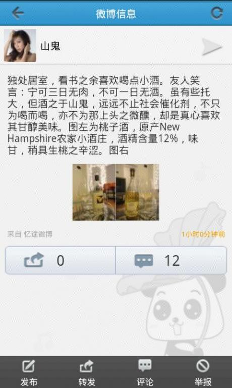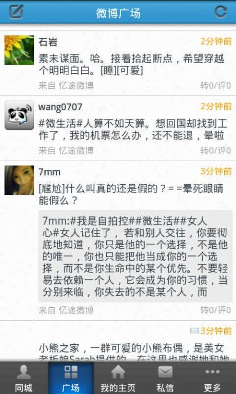 到年終了,看很多人都在總結(jié),那么,我也總結(jié)一下我的一個(gè)月android開發(fā)經(jīng)歷吧! 我個(gè)人08年大學(xué)畢業(yè),學(xué)的印刷專業(yè),畢業(yè)后培訓(xùn)了半年的php,一直在成都做php到現(xiàn)在??! 話說10月份的時(shí)候,公司下達(dá)任務(wù),要在一個(gè)月內(nèi)做一個(gè)華人微博的android客服端??!(華人微博是我們公司針對(duì)海外華人的一個(gè)微博平臺(tái))! 剛開始,還是急??!為啥?因?yàn)椴粫?huì),從來就沒接觸過java,也沒有關(guān)注過android,沒辦法,任務(wù)下來了,硬著頭皮上了! 國慶節(jié)時(shí)就跑書店買了兩本書,一本android的,名字忘了,大多是小例子;一本是java的書《21天精通java》,畢竟還是有php的基礎(chǔ),所以,看java的書,還是比較順利,大致選了一些章節(jié)看了看,主要是看代碼怎么寫,和一些語法細(xì)節(jié)!!android那本書,也主要看的是大概,了解搭建開發(fā)環(huán)境什么的!!再看書上的例子!多看了幾個(gè),也就大致摸到android項(xiàng)目的文件結(jié)構(gòu)啥的了!后面的例子,基本就是看主要的實(shí)現(xiàn)地方了!! 暈了個(gè)一個(gè)星期左右吧!感覺該進(jìn)行開發(fā)了! 因?yàn)?,程序和UI都是一個(gè)人弄,沒有配專門的UI,所以,很多界面圖都是用的別人項(xiàng)目的,(后面會(huì)貼圖,你看界面,可能有點(diǎn)像新浪微博的,又有點(diǎn)像飛信的界面,哈哈)。