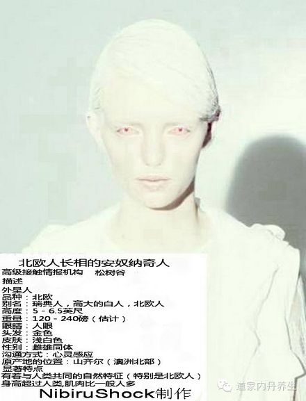 47.Nordics(諾迪克人)他們身高5-6.5英尺,體重約120-240磅,金發(fā),白皮膚,有男性和女性,可以做到心靈感應(yīng),他們身高和肌肉都比人類的要高要強壯。他們是地球外的人型外星人種族,一直觀察著地球人的文化,但他們不會做干預(yù)。據(jù)說他們跟Greys小灰人有沖突,是因為他們反對灰人干擾人類的進化過程。