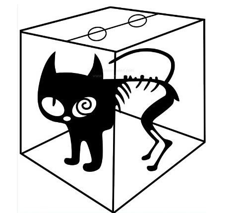 解讀: Searle創(chuàng)造了“中文房間”思想實驗來反駁電腦和其他人工智能能夠真正思考的觀點。房間里的人不會說中文;他不能夠用中文思考。但因為他擁有某些特定的工具,他甚至可以讓以中文為母語的人以為他能流利的說中文。根據(jù)Searle,電腦就是這樣工作的。它們無法真正的理解接收到的信息,但它們可以運行一個程序,處理信息,然后給出一個智能的印象。 2.薛定鍔的貓(Schrodinger’s Cat) 薛定鍔的貓最早由物理學(xué)家薛定鍔提出,是量子力學(xué)領(lǐng)域中的一個悖論。其內(nèi)容是:一只貓、一些放射性元素和一瓶毒氣一起被封閉在一個盒子里一個小時。在一個小時內(nèi),放射性元素衰變的幾率為50%。如果衰變,那么一個連接在蓋革計數(shù)器上的錘子就會被觸發(fā),并打碎瓶子,釋放毒氣,殺死貓。因為這件事會否發(fā)生的概率相等,薛定鍔認(rèn)為在盒子被打開前,盒子中的貓被認(rèn)為是既死又活的。