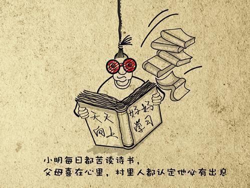 小明每日都苦讀詩書,父母喜在心里,村里人都認(rèn)定他必有出息。