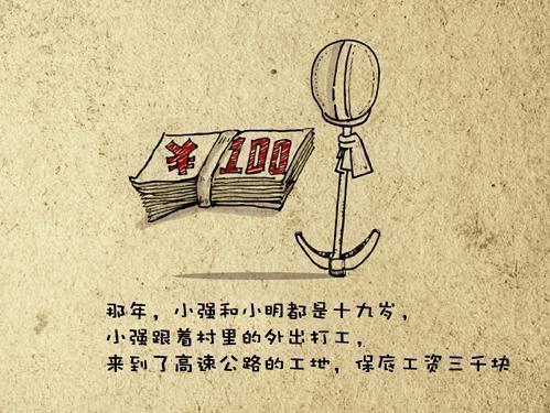 小強(qiáng)跟著村里人外出打工,來到了高速公路的工地,保底工資三千塊。