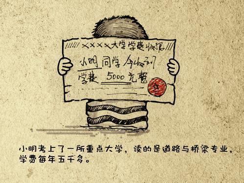 小明考上了一所重點(diǎn)大學(xué),讀的是道路與橋梁專業(yè),學(xué)費(fèi)每年五千多。
