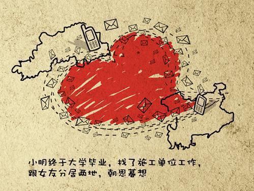 小明終于大學(xué)畢業(yè),找了施工單位工作,跟女友分居兩地,朝思暮想。