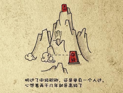 小明過了中級職稱,還是單身一個人過,心想著再干幾年就是高級了。