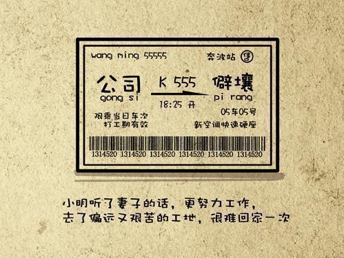 小明聽了妻子的話,更努力工作,去了偏遠(yuǎn)又艱苦的工地,很難回家一次。
