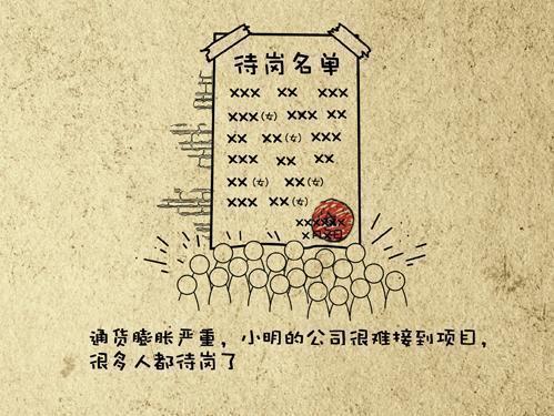 通貨膨脹嚴(yán)重,小明的公司很難接到項(xiàng)目,很多人都待崗了。