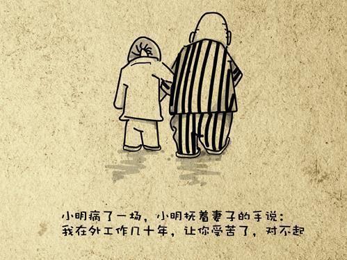 小明病了一場,小明撫著妻子的手說:我在外工作幾十年,讓你受苦了,對不起。