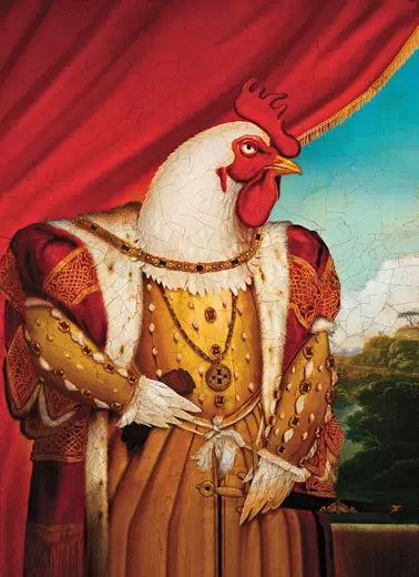 話說公元前490年,在希臘某條大路的邊上,人們看到了拯救西方文明的雞。當(dāng)時(shí)波斯大軍來犯,雅典將軍地米斯托克利率兵迎敵。途中,他看到路邊有兩只公雞掐架,便招呼自己的軍隊(duì)停下,對(duì)他們說:“看吶,這倆家伙奮力拼搏,不是為了家里的神、祖上的豐碑、個(gè)人的榮耀、人身自由或者保護(hù)子女,它們無非是因?yàn)閷?duì)方不給它們讓路?!边@個(gè)故事到此為止。沒說失敗者得到什么下場(chǎng),也沒提為何士兵們看到這種本能的攻擊性沖動(dòng),不覺無聊透頂或乏味郁悶,反而士氣大漲。但史書記載,希臘人因此備受鼓舞,他們奮勇殺敵,趕走了侵略者。西方文明是被拯救了,那兩只掐架的雞可說是功不可沒,但今日的人們是怎么報(bào)答救命恩人的呢?難道就是把當(dāng)初激勵(lì)士氣的兩只雞的同類,裹上面包屑,扔進(jìn)油鍋,然后再澆上各種口味的醬汁?那兩只公雞的子孫后代恐怕會(huì)想——假如它們真有如此深刻的思想能力——看看我們的祖先干的事,讓我們倒了八輩子霉。 雞肉是我們這個(gè)時(shí)代無所不在的食品,在不同的文化環(huán)境中廣受歡迎。雞肉口味溫和、肉質(zhì)細(xì)膩,幾乎任何一種烹調(diào)法都可以在它身上做文章,施展絕技。 步入成年的一代英國(guó)人相信印度咖喱雞是本國(guó)傳統(tǒng)菜肴,而同樣的情形也發(fā)生在中國(guó)——肯德基炸雞。以前的美國(guó)家庭,大多在院子里養(yǎng)著幾只雞,隨時(shí)抓來,把它們變成豐盛的晚餐。時(shí)光流逝,大多數(shù)美國(guó)人吃起雞肉的時(shí)候便會(huì)產(chǎn)生懷舊的情緒,憶起昔日美好的田園生活。當(dāng)作家杰克?坎菲爾要給心理慰藉找個(gè)恰當(dāng)?shù)谋扔鲿r(shí),他想到的是《心靈雞湯》,而不是《心靈蛤蜊濃湯》。 人們不禁要問,雞有何德何能,居然登上了文化和烹調(diào)的主位?更令人驚異的是,眾多考古學(xué)家居然認(rèn)為,最初馴化雞的目的不是為了吃肉而是為了斗雞。在20世紀(jì)大規(guī)模工業(yè)化養(yǎng)殖發(fā)展起來之前,雞在經(jīng)濟(jì)和營(yíng)養(yǎng)方面給人的貢獻(xiàn)并不明顯。在《槍炮、病菌與鋼鐵》這本書里,賈德?戴蒙將雞歸入“小型哺乳類動(dòng)物和家禽及昆蟲類”的行列,稱它們雖然對(duì)人類有用,但與馬或牛相比,除神話傳說之外,在改變歷史發(fā)展軌跡方面所起的作用微乎其微。盡管如此,數(shù)千年過去了,在文化、藝術(shù)、菜肴、科學(xué)和宗教方面,雞持續(xù)不斷地啟示人類,作出了諸多貢獻(xiàn)。在某些文化中,雞曾經(jīng)是,現(xiàn)在也是一種神圣的動(dòng)物。威風(fēng)凜凜、時(shí)刻警惕的母雞被普遍當(dāng)做養(yǎng)育和生殖力的象征。埃及神殿里懸掛雞蛋,確保河水充沛。生機(jī)勃勃的大公雞(也稱雄雞)則代表著雄性氣概——甚至在古代波斯人的拜火教信仰中,人們認(rèn)為雄雞報(bào)曉代表良善精靈向人們預(yù)示:宇宙間黑暗與光明之間的爭(zhēng)斗出現(xiàn)了勝利在望的轉(zhuǎn)折點(diǎn)。對(duì)于羅馬人來說,雞掌握著預(yù)知命運(yùn)的殺手锏,在戰(zhàn)時(shí)尤其如此。羅馬大軍出征時(shí),總要帶著一群雞,臨戰(zhàn)之時(shí)仔細(xì)觀察雞群的動(dòng)向;胃口好意味著勝算較大。據(jù)西塞羅記述,公元前249年,一場(chǎng)海上大戰(zhàn)即將展開,此時(shí)一群雞居然拒絕進(jìn)食。一名執(zhí)政官大怒,將它們?nèi)既舆M(jìn)了大海。史書記載,他最后戰(zhàn)敗了。 但是有這么一項(xiàng)重大的宗教傳統(tǒng)——具諷刺意義的是,雖然猶太人的面丸雞湯和周日雞肉晚餐都跟宗教傳統(tǒng)有不可割裂的淵源——卻沒有給予雞足夠的重視,令它在宗教活動(dòng)中享有應(yīng)有的地位。 從舊約全書涉及祭禮的內(nèi)容來看,耶和華明顯更青睞牛羊肉。在《利未記》第5章第7節(jié)中,耶和華說,如果有罪之人的“力量不夠獻(xiàn)一只羊羔,就要因所犯的罪,把兩只斑鳩或是兩只雛鴿帶到耶和華面前為贖衍祭?!痹凇恶R太福音》第23章第37節(jié)中,耶穌對(duì)耶路撒冷人說自己關(guān)愛他們,好像母雞把小雞聚集在翅膀底下。人們疏忽了,沒有給予這個(gè)畫面足夠的重視,不然的話,基督教圖像史就不會(huì)像今天這樣,被各種牧羊人的形象占據(jù)了。在圣經(jīng)新約的《福音書》中,雞的作用雖然不大,卻是應(yīng)驗(yàn)耶穌預(yù)言的關(guān)鍵一環(huán),因?yàn)橐d受難之前曾對(duì)門徒彼得說今夜“雞叫之前”你要三次不認(rèn)我。(公元9世紀(jì)的時(shí)候,為紀(jì)念這個(gè)事件,教宗尼古拉一世曾頒布敕令:所有教堂頂上應(yīng)安放一個(gè)公雞的形象,直到今天人們還會(huì)看到教堂尖頂上立著小公雞樣子的風(fēng)向標(biāo)。)其實(shí)那只雞除了報(bào)時(shí)以外,也沒干什么,但很有可能在不經(jīng)意間,人們將它的報(bào)時(shí)行為與出賣耶穌扯上了關(guān)系,從而貽誤了雞在西方文化中的遠(yuǎn)大前程。在當(dāng)代美國(guó)人的語言中,“雞”總是讓人聯(lián)想起怯懦、神經(jīng)性焦慮(“杞人憂天”)以及無效恐慌(“像無頭雞一樣亂竄”)之類。 事實(shí)上,這個(gè)物種的雄性堪為兇猛的動(dòng)物,特別是按照戰(zhàn)斗雞培育和訓(xùn)練的那些雞。大公雞腿上天生就有骨質(zhì)距;人類覺著不過癮,又在它們腿上綁上距鐵