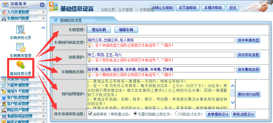 資源預(yù)約管理使用方法與車(chē)輛預(yù)約管理基本一致,請(qǐng)參考點(diǎn)晴OA車(chē)輛預(yù)約管理模塊: ![]() 在使用本模塊之前,需要先進(jìn)行系統(tǒng)基礎(chǔ)參數(shù)設(shè)置:車(chē)輛、司機(jī)、申請(qǐng)類(lèi)型、審批流程等: ![]() 需要注意的事項(xiàng):上面的車(chē)輛審核流程歸檔人必須是車(chē)隊(duì)車(chē)輛安排的調(diào)度員,這樣才能實(shí)現(xiàn)車(chē)輛審批完畢后,系統(tǒng)自動(dòng)通知這個(gè)歸檔人(也即車(chē)隊(duì)車(chē)輛調(diào)度員),然后歸檔人(車(chē)隊(duì)調(diào)度員)才方便進(jìn)行車(chē)輛司機(jī)等安排工作。車(chē)輛調(diào)度員應(yīng)該開(kāi)放如下紅色框內(nèi)權(quán)限,才能完成相關(guān)工作: ![]() 詳細(xì)基礎(chǔ)信息設(shè)置方法、以及審批流程和路線參見(jiàn)以下教程: 完成以上基礎(chǔ)參數(shù)設(shè)置后,就可以使用本模塊了。 相關(guān)教程: 該文章在 2019/5/30 10:48:04 編輯過(guò) |