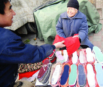 天涼了,他們要迎著如刀的寒風(fēng),守候在攤前,三角五角地掙回他們的生存所需。寒冷和炎熱一樣在他們的臉上留下印記,一些姑娘和少婦的臉上、手上生了紫紅色的凍瘡,腫脹的手上綻著一道道皴裂,裂縫被污垢染成黑色。