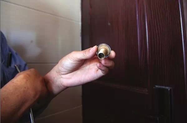 3.“貓眼”開鎖三步走 ①用專用的鉗子取下防盜門上“貓眼”