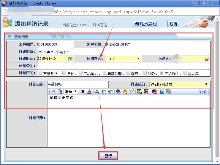 [點(diǎn)晴永久免費(fèi)OA]點(diǎn)晴CRM系統(tǒng)添加拜訪記錄