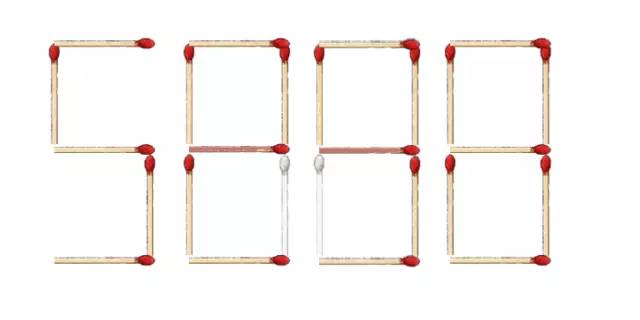 按說(shuō)到此呢,這個(gè)數(shù)字應(yīng)該是最大的了,打完收工?那可不行。瞪目怒視大腦飛速旋轉(zhuǎn),果然又有新的發(fā)現(xiàn),在只移動(dòng)兩根火柴前提下,還可以組合成 5E88。