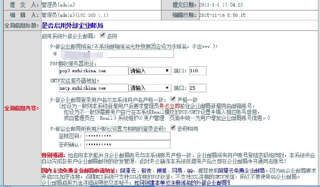 注意:上面的外部SMTP發(fā)信服務(wù)器必須啟用,否則就是通過點(diǎn)晴OA內(nèi)置郵局發(fā)送Email到外部地址的,如果點(diǎn)晴OA沒有外部公網(wǎng)IP和域名、并且沒有啟用內(nèi)置郵局對(duì)外的話,發(fā)出的Email是肯定會(huì)被當(dāng)成垃圾郵件攔截的。