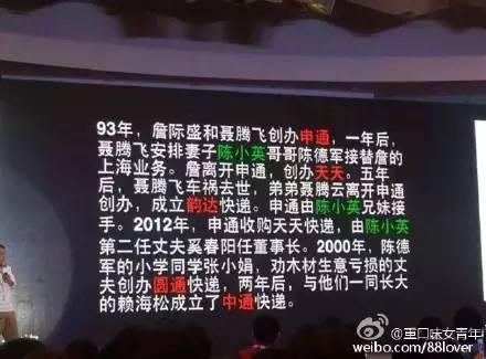 野生葛根粉_葛博士:貴圈關(guān)系復(fù)雜,反正我縷不清了,反正都是一家的哦! SIldess:信息量好大! 二手車沈浪:蠻傳奇的! 我的青春打烊了:其實(shí)是一家! Zhuozi_Chen:不只娛樂圈亂,快遞圈也蠻亂的。 momopoppy:全國只有兩家快遞,順豐和“桐廬人”快遞 而“快遞縣”的故事,演繹了中國民營企業(yè)發(fā)展的獨(dú)特地緣路徑。 “這里誰家做快遞?” “全都是?!痹谡憬]縣夏塘村,記者的問題,得到了這樣的答案。