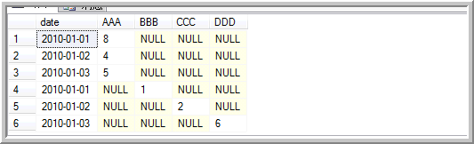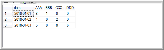 需要實(shí)現(xiàn)的報(bào)表樣式:每一行既每一天,顯示所有商品(列)該天的銷售數(shù)量;