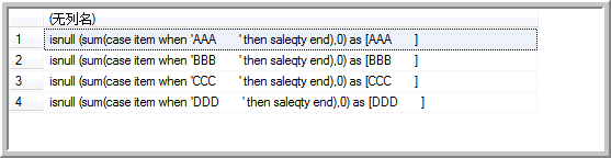 isnull (sum(case item when ''AAA'' then saleqty end),0) as AAA,