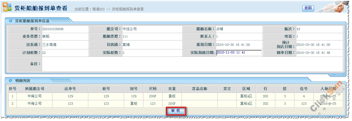 單據(jù)在【堆場(chǎng)管理】處被駁回。 |