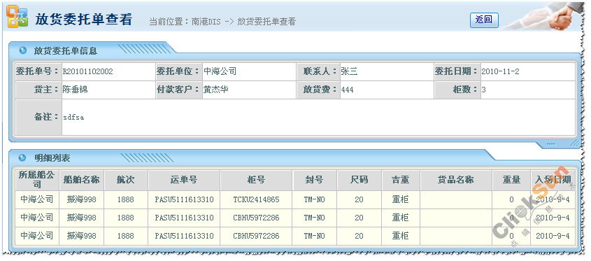 放貨委托單修改完畢后,點(diǎn)擊【提交】保存對當(dāng)前放貨委托單信息的修改。