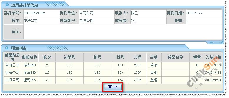 點(diǎn)擊【審核】對當(dāng)前放貨委托單進(jìn)行審核。