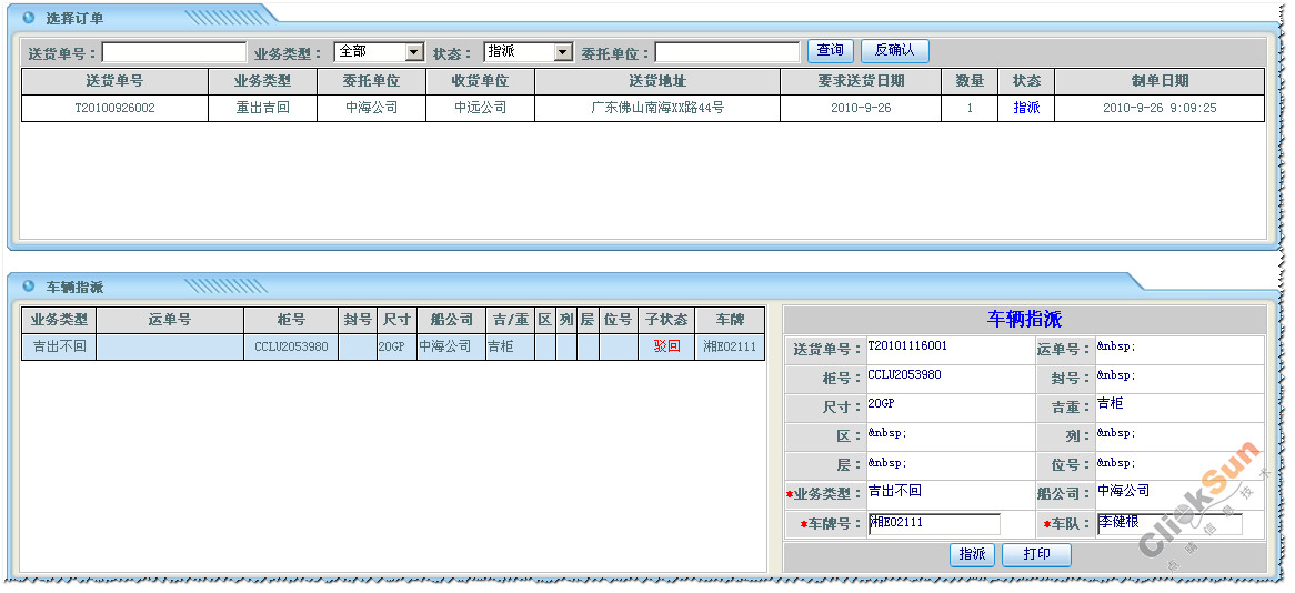 點晴PMS集裝箱碼頭管理信息系統(tǒng)——車輛指派