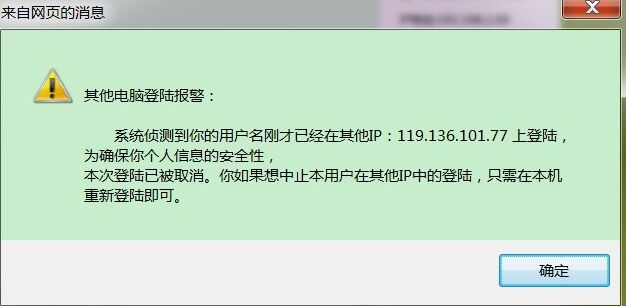 :點晴OA設置中針對其他電腦登錄報警的啟用動態(tài)IP登錄到底是怎么回事?在什么情況下應該開啟和關閉呢?![]() ![]() 基于系統(tǒng)操作安全性考慮,點晴MIS系統(tǒng)在正常情形下,同一時間只允許在一個電腦上登錄,不允許在多臺電腦上登錄,如果出現(xiàn)了以上界面,說明肯定該賬戶同時在其他電腦上登錄了,或者當前電腦登錄IP發(fā)生了變化,也有可能密碼泄露了,這是一項系統(tǒng)安全性措施。