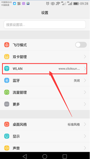 操作圖示:4.1.1、打開設(shè)置,點(diǎn)擊“WLAN”,如下圖: