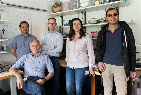 人造神經(jīng)元研發(fā)團(tuán)隊(duì),圖片來(lái)源:IBM 神經(jīng)薄膜是整個(gè)神經(jīng)元的關(guān)鍵。在生物神經(jīng)細(xì)胞中,起神經(jīng)薄膜作用的是一層液態(tài)薄膜,它的物理機(jī)理類似于電阻和電容:它阻止電流直接通過(guò),但同時(shí)又在吸收能量。當(dāng)能量吸收到一定程度,它就向外發(fā)射自己產(chǎn)生的信號(hào)。這信號(hào)沿著軸突傳導(dǎo),被其他神經(jīng)元接收。然后再重復(fù)這一過(guò)程。 在IBM制造的神經(jīng)元中,液態(tài)薄膜被一小片神經(jīng)薄膜取代。神經(jīng)薄膜是由鍺銻碲復(fù)合材料(也稱GST材料)制成的,該材料也是可重寫(xiě)藍(lán)光光盤的主要功能材料。鍺銻碲復(fù)合材料是一種相變材料,即它可以以兩種狀態(tài)存在:晶體態(tài)和無(wú)定形態(tài)。通過(guò)激光或電流提供能量,兩種狀態(tài)之間可以互相轉(zhuǎn)變。在不同狀態(tài)下,相變材料的物理特性截然不同:鍺銻碲復(fù)合材料在無(wú)定形態(tài)下不導(dǎo)電,而在晶體態(tài)下導(dǎo)電。 在人工神經(jīng)元中,鍺銻碲薄膜起初是無(wú)定形態(tài)的。隨著信號(hào)的到達(dá),薄膜逐漸變成結(jié)晶態(tài),即逐漸變得導(dǎo)電。最終,電流通過(guò)薄膜,制造一個(gè)信號(hào),并通過(guò)該神經(jīng)元的輸出端發(fā)射出去。在一定的時(shí)間后,鍺銻碲薄膜恢復(fù)為無(wú)定形態(tài)。這個(gè)過(guò)程周而復(fù)始。