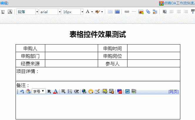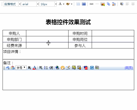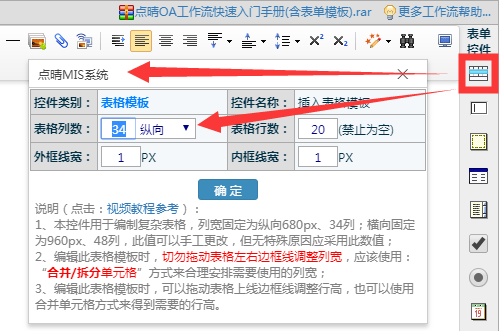 ![]() ![]() 注意,在新版點(diǎn)晴OA工作流表單設(shè)計(jì)器中,表格的插入是通過表格控件,然后合并各個(gè)單元格最終實(shí)現(xiàn)需要的復(fù)雜表格樣式: ![]() 根據(jù)上圖所示,插入表格的寬度只與錄入的表格列數(shù)有關(guān),要減少表格的寬度,就需要減少表格的列數(shù)即可: 以上為新插入表格寬度的調(diào)整方法,修改上面的表格列數(shù),就可以調(diào)整插入表格的寬度,插入表格的寬度=插入的列數(shù)×20px。 如果需要編輯已經(jīng)按照以上方法生成的表格寬度,需要?jiǎng)h除/增加多余的列來變通實(shí)現(xiàn)列寬的縮小/增加表格寬度(顯示原始列的方法為拆分單元格): ![]() 注意,拆分單元格后,會(huì)看到此列為5個(gè)列寬(5×20px=100px)合并單元格而來,刪除一個(gè)列寬后,還剩余4個(gè)列寬(4×20px=80px),每刪除一個(gè)列寬,整個(gè)表格就會(huì)減少寬度20px。 總之,不要直接拖動(dòng)單元格邊框來調(diào)整列寬,一定要通過增加或減少列數(shù)的方式來增加或減少表格寬度。 行高的調(diào)整則更為簡(jiǎn)單,直接將鼠標(biāo)光標(biāo)放在表格橫線上,看到調(diào)整圖標(biāo)后,點(diǎn)擊鼠標(biāo)左鍵拖動(dòng)調(diào)整即可: ![]() 該文章在 2021/1/16 16:00:07 編輯過