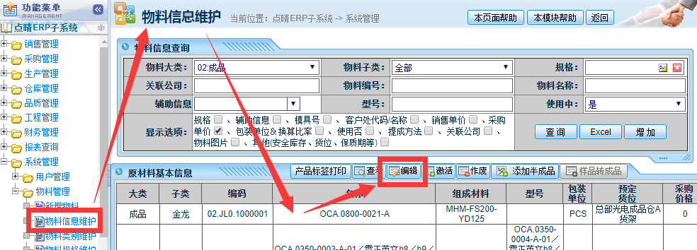 ![]() 找到需要維護(hù)的物料,點(diǎn)擊“編輯”: