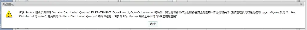 [點(diǎn)晴永久免費(fèi)OA]提示錯(cuò)誤:SQL Server 阻止了對組件'Ad Hoc Distributed Queries '的STATEMENT 'OpenRowset/OpenDatasource',如何解決?