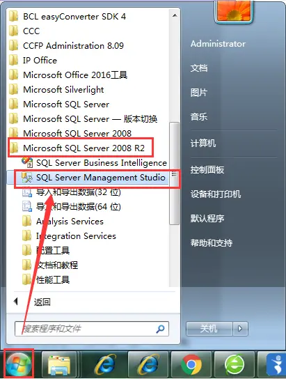 1、開始 — 所有程序 — Microsoft SQL Server 2008 R2 — SQL Server Management Studio(如圖1-1)。