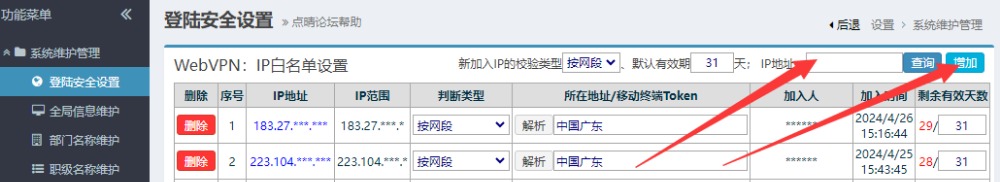 [點晴永久免費OA]登錄失??!請檢查表單信息是否正確,您可將本機IP告知管理員放行