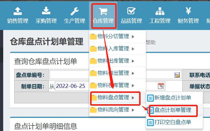 點晴模切ERP-如何查看盤點計劃的盤點結(jié)果