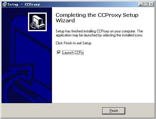 CCProxy是一款國內流行的代理服務器軟件??傮w來說,CCProxy可以完成兩項大的功能:代理共享上網(wǎng)和客戶端代理(Socks/HTTP/FTP/Telnet等),本文中需要用到是CCProxy的Socks5代理服務器功能,安裝配置方法如下。 1、在局域網(wǎng)內找一臺不重要的電腦,下載安裝CCProxy程序 下載地址:http://www.ccproxy.com/(要實現(xiàn)本文功能可以只用免費3用戶試用版即可) 特別提醒:切勿將CCProxy安裝在有重要用途的服務器上,以免造成安全隱患! 2、安裝CCProxy程序 ? 安裝過程很簡單,你老老實實一直點擊“Next”,最后點擊“Finish”,就可以完成CCProxy安裝了。只是選擇安裝路徑的時候,可以根據(jù)需要選擇不安裝在C盤中。